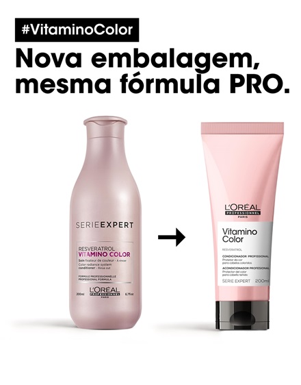 Condicionador de tratamento para cabelos coloridos para proteção da cor e manutenção do brilho nos fios. O produto da linha Vitamino Color Resveratrol tem fórmula profissional com um poderoso antioxidante que protege contra os radicais livres e agentes oxidantes que agridem e desbotam a cor. Além de selar a fibra capilar, auxilia manter a cor por mais lavagens e preserva o cabelo nutrido por mais tempo.